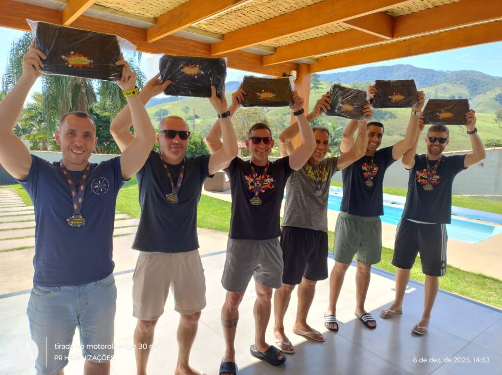 Este ano, o churrasco aconteceu na casa do presidente Daniel, em um clima de muita amizade e descontração. Quem comandou a churrasqueira foi o Teddy, e claro que não poderia faltar aquele tradicional “fogo acidental”.